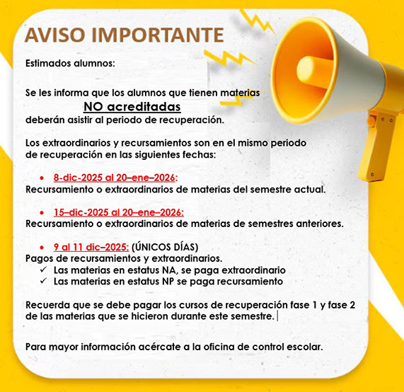 CALENDARIO DE RECURSAMIENTOS DEL 15 DICIEMBRE 2025 AL 20 ENERO 2026 TURNO VESPERTINO
